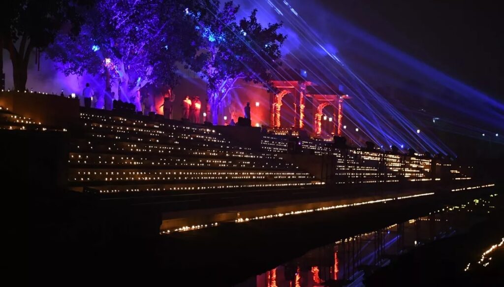 नई दिल्ली, 14 नवंबर। राष्ट्रीय राजधानी दिल्ली के इतिहास में पहली बार कश्मीरी गेट स्थित यमुना नदी के वासुदेव घाट पर बुधवार को दिल्ली दीपोत्सव-2024 का आयोजन किया गया। घाट को 3.51 लाख दीयों की रोशनी से जगमगाया गया। आयोजन में रोशनी और आस्था का अद्भुत संगम दृष्टिगोचर हुआ। लेजर एवं ड्रोन शो ने इसकी भव्यता में चार चांद लगा दिए। देव दीपावली, गुरु पर्व और भगवान बिरसा मुंडा की 150वीं जयंती के उपलक्ष्य में दिल्ली के उप राज्यपाल वीके सक्सेना के मार्गदर्शन में दिल्ली विकास प्राधिकरण ने इसका आयोजन किया। सक्सेना ने दीया प्रज्ज्वलित कर यमुना नदी में प्रवाहित किया। इस दौरान उन्होंने यमुना आरती की। लेजर एवं ड्रोन शो में जय श्रीराम की आकृति उभरने से आसमान चमक उठा।वासुदेव घाट की बारादरी में भव्य और दिव्य राम दरबार भी स्थापित किया गया।