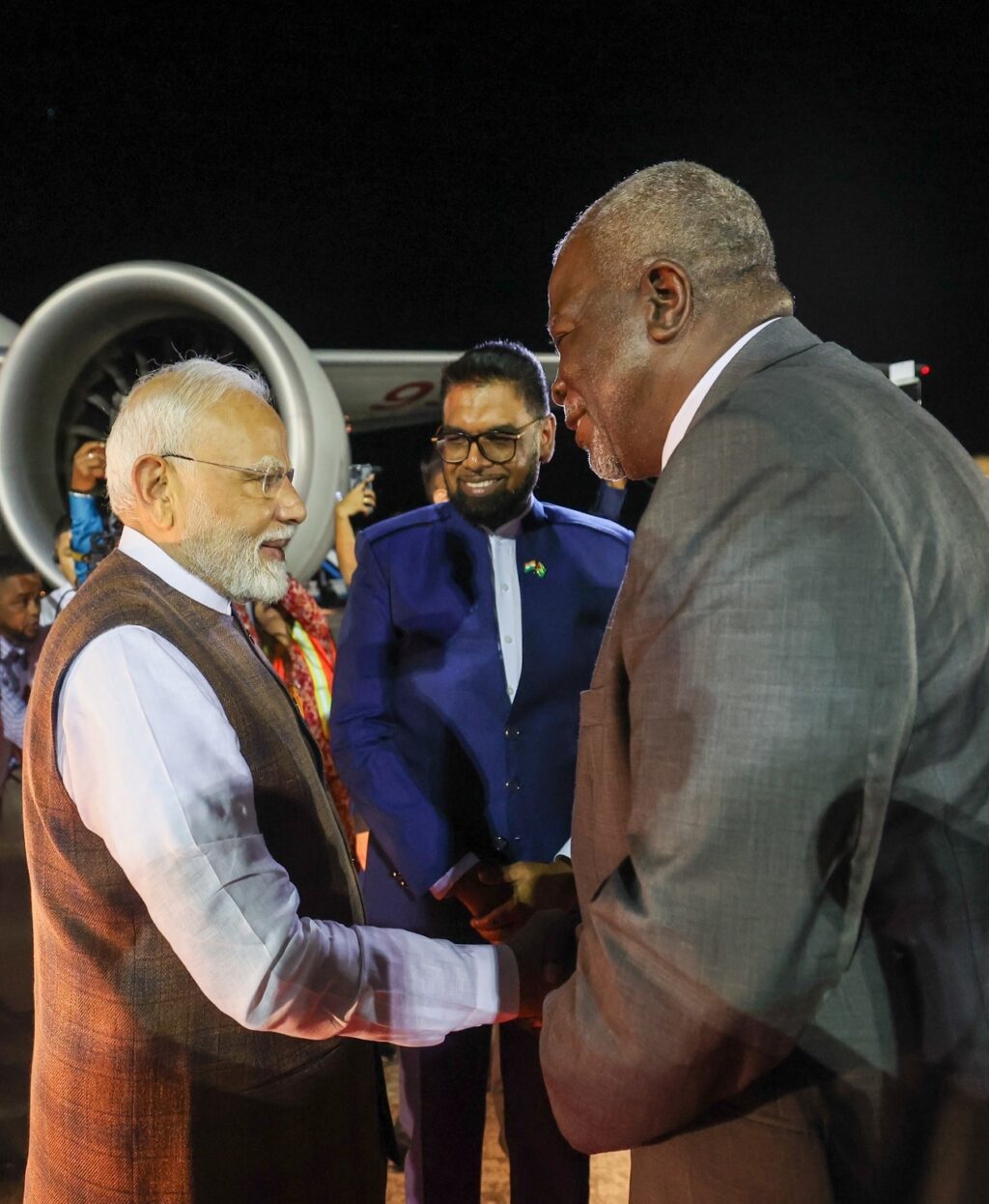 प्रधानमंत्री मोदी ने गुयाना पहुंचने की खुशी सचित्र एक्स हैंडल पर साझा की। उन्होंने लिखा ”कुछ समय पहले गुयाना में उतरा। हवाई अड्डे पर मेरा स्वागत करने के लिए पहुंचे राष्ट्रपति डॉ. इरफान अली, प्रधानमंत्री मार्क एंथोनी फिलिप्स, वरिष्ठ मंत्रियों और अन्य गणमान्य व्यक्तियों का आभार। मुझे विश्वास है कि इस यात्रा से हमारे देशों के बीच मित्रता और गहरी होगी।”