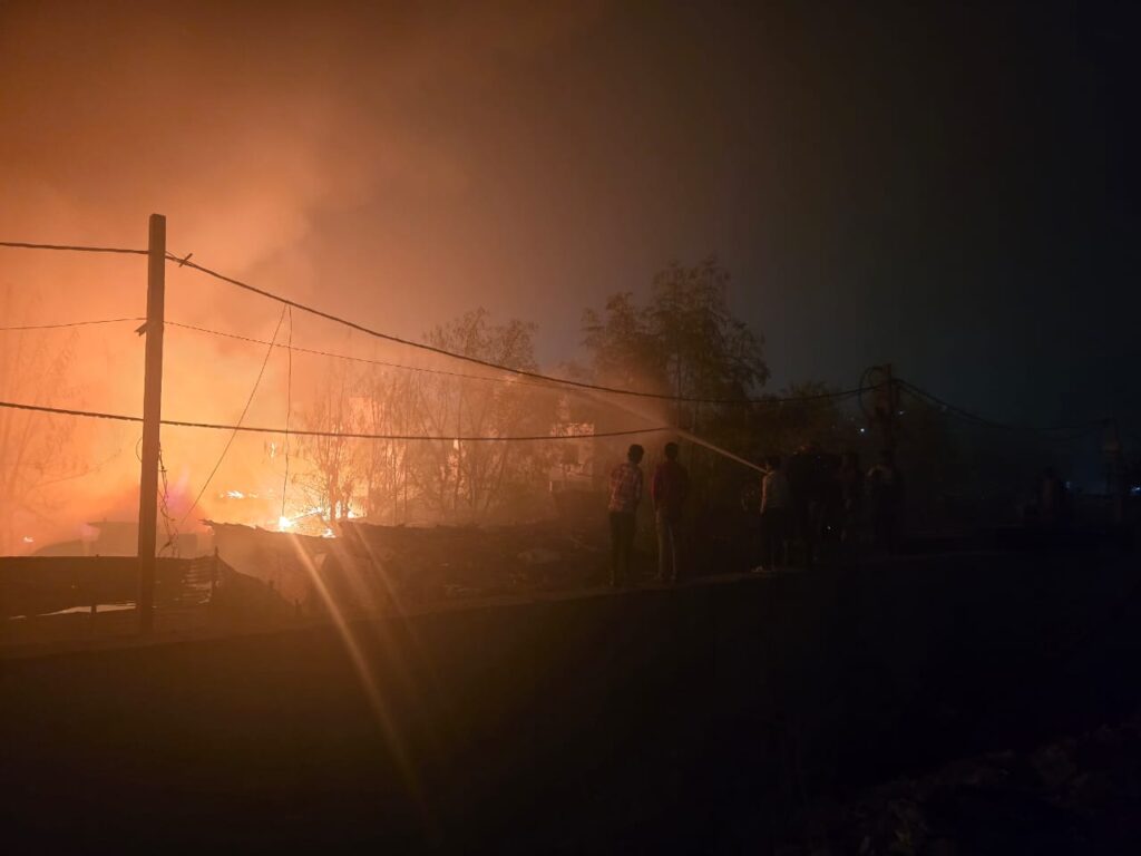 दमकल विभाग के अनुसार बीती आधी रात 12.06 बजे फायर ब्रिगेड को आग लगने की सूचना मिली थी। दमकल अधिकारी यशवन्त सिंह मीना टीम के साथ मौके पर पहुंचे। उन्होंने बताया कि आग बुझाने के लिए 7-8 गाड़ियां मौके पर भेजी गईं। झुग्गियों के साथ ही कबाड़ गोदाम तक आग पहुंच गई। इस घटना में 10 से 12 झुग्गियां जल कर राख हो गई।