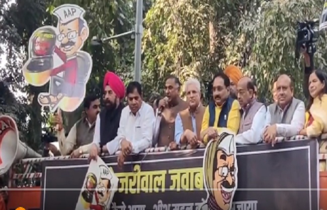 नई दिल्ली, 21 नवंबर । भारतीय जनता पार्टी (भाजपा) के प्रदेश अध्यक्ष वीरेंद्र सचदेवा के नेतृत्व में पार्टी कार्यकर्ताओं ने गुरुवार को पूर्व मुख्यमंत्री अरविंद केजरीवाल के आवास के बाहर एक बड़ा विरोध प्रदर्शन किया। प्रदर्शनकारियों ने केजरीवाल से विवादित ‘शीश महल’ बंगले पर कथित फिजूलखर्ची को लेकर जवाब मांगा ।