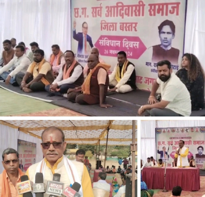 छत्तीसगढ़ सर्व आदिवासी समाजजिला अध्यक्ष दशरथ कश्यप ने संविधान की महत्ता और आदिवासी अधिकारों की रक्षा पर जोर दिया। कार्यक्रम में सभी वक्ताओं द्वारा आदिवासी एकता, जागरूकता और संविधान के प्रति सम्मान पर बल दिया गया। छत्तीसगढ़ सर्व आदिवासी समाज के प्रदेश अध्यक्ष राजाराम तोड़ेम ने कहा कि संविधान लागू होने के 80 वर्ष के बाद भी आज बस्तर के आदिवासी समुदाय को अपने अधिकार प्राप्त नहीं है। विकास की मुख्य धारा और जल जंगल जमीन जैसे अधिकारों से आज भी आदिवासी समाज दूर है।
