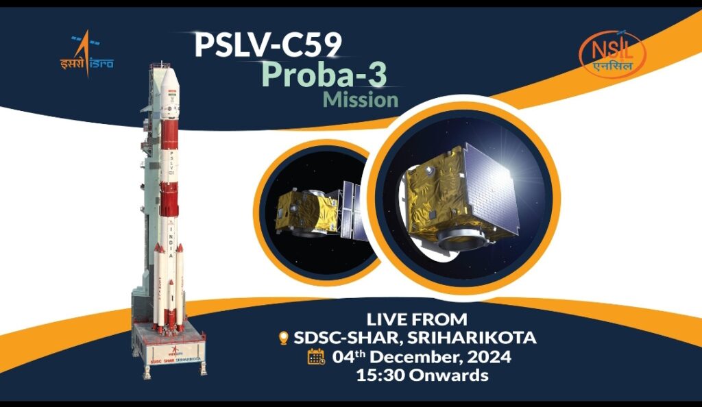 नई दिल्ली, 03 दिसंबर । यूरोपीय अंतरिक्ष एजेंसी का प्रोबा-3 मिशन को कल शाम लगभग चार बजे श्रीहरिकोटा अंतरिक्ष केंद्र से लॉन्च किया जाएगा। भारतीय अंतरिक्ष अनुसंधान संगठन (इसरो) ने आज सुबह एक्स पोस्ट में इसकी घोषणा की। इसरो ने कहा कि पीएसएलवी-सी 59/प्रोबा-3 मिशन के लिए हमसे लाइव जुड़ें। एनएसआईएल के नेतृत्व में और इसरो द्वारा निष्पादित यह मिशन ईएसए के प्रोबा-3 उपग्रहों को एक अनोखी कक्षा में प्रक्षेपित करेगा, जो वैश्विक अंतरिक्ष अन्वेषण में भारत के बढ़ते योगदान को दर्शाता है।