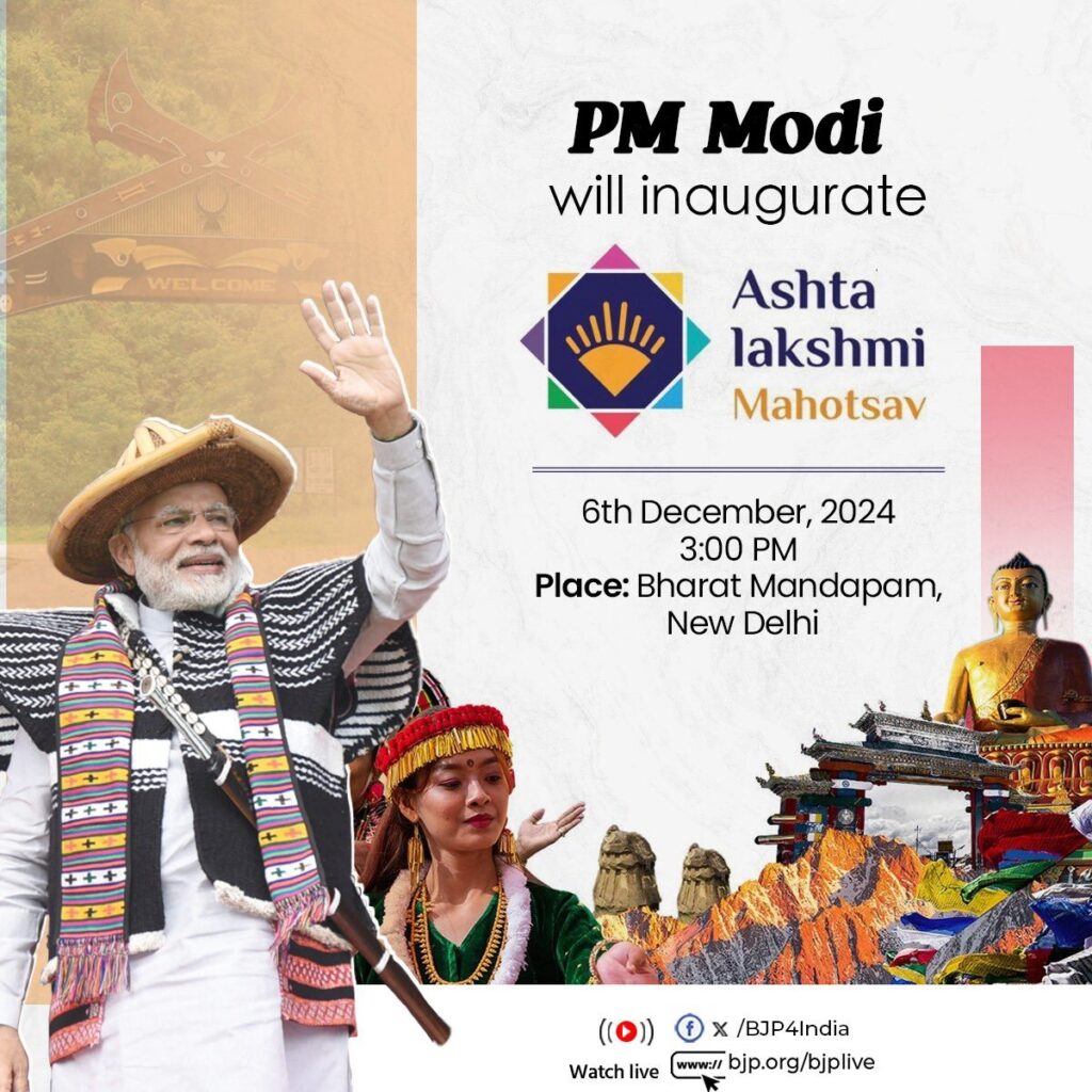 नई दिल्ली, 06 दिसंबर । प्रधानमंत्री नरेन्द्र मोदी आज राष्ट्रीय राजधानी दिल्ली में प्रथम तीन दिवसीय अष्टलक्ष्मी महोत्सव का उद्घाटन करेंगे। इस भव्य आयोजन का साक्षी नई दिल्ली के प्रगति मैदान का भारत मंडपम बनेगा। प्रधानमंत्री मोदी के कार्यक्रम की सूचना आज सुबह भारतीय जनता पार्टी (भाजपा) ने एक्स हैंडल पर दी। भारत सरकार के पत्र एवं सूचना कार्यालय (पीआईबी) ने उद्घाटन समारोह की पूर्व संध्या पर जारी विज्ञप्ति में आयोजन की विस्तार से जानकारी साझा की। पीआईबी की विज्ञप्ति के अनुसार, यह महोत्सव पूर्वोत्तर भारत की विशाल सांस्कृतिक विरासत को प्रदर्शित करेगा। इस महोत्सव में पारंपरिक कला, शिल्प और सांस्कृतिक प्रथाओं की विविधता को एक साथ लाया जाएगा। यह महोत्सव पारंपरिक हस्तशिल्प, हथकरघा, कृषि उत्पादों और पर्यटन में आर्थिक अवसरों को बढ़ावा देगा। विज्ञप्ति के अनुसार, प्रधानमंत्री नरेन्द्र मोदी पूर्वोत्तर भारत की सांस्कृतिक जीवंतता को प्रदर्शित करने की अपनी प्रतिबद्धता के अनुरूप आज अपराह्न लगभग 3 बजे भारत मंडपम में अष्ट लक्ष्मी महोत्सव का उद्घाटन करेंगे। इस तीन दिवसीय सांस्कृतिक महोत्सवका समापन आठ दिसंबर को होगा।विज्ञप्ति के अनुसार, इस महोत्सव में कारीगरों की प्रदर्शनियां, ग्रामीण हाट, राज्य विशेष मंडप होंगे। तीन दिवसीय आयोजन में पूर्वोत्तर क्षेत्र के विकास के लिए महत्वपूर्ण क्षेत्रों पर तकनीकी सत्र आयोजित किए जाएंगे। प्रमुख कार्यक्रमों में निवेशक गोलमेज सम्मेलन और क्रेता-विक्रेता बैठकें शामिल हैं।इन्हें इस क्षेत्र के आर्थिक विकास को बढ़ावा देने वाले नेटवर्क, भागीदारी और संयुक्त पहलों को निर्मित करने और मजबूत करने का अनूठा अवसर प्रदान करने के लिए डिजाइन किया गया है।इस महोत्सव में डिजाइन कॉन्क्लेव और फैशन शो भी होंगे। पूर्वोत्तर भारत की समृद्ध हथकरघा और हस्तशिल्प परंपरा को राष्ट्रीय मंच पर प्रदर्शित किया जाएगा। इस महोत्सव में जीवंत संगीत और पूर्वोत्तर के व्यंजनों का भी प्रदर्शन किया जाएगा।