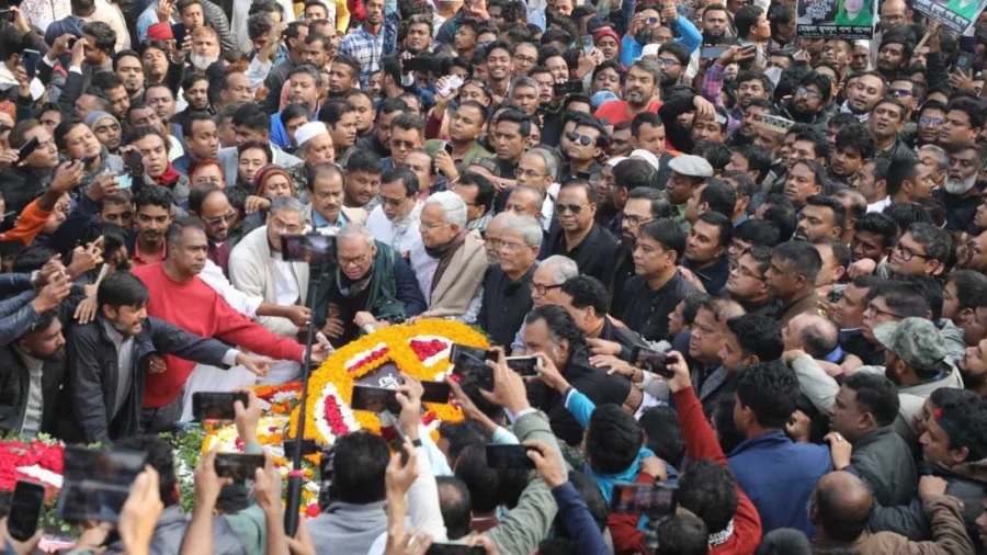 ढाका, 14 दिसंबर । बांग्लादेश मुक्ति संग्राम में अपने प्राणों की आहुति देने वाले शहीद बुद्धिजीवियों को आज श्रद्धांजलि अर्पित की गई। राष्ट्रपति मोहम्मद शहाबुद्दीन, अंतरिम सरकार के मुख्य सलाहकार मोहम्मद यूनुस और बांग्लादेश नेशनलिस्ट पार्टी (बीएनपी) के नेताओं ने राजधानी ढाका के मीरपुर में शहीद बुद्धिजीवी स्मारक पहुंचकर पुष्पांजलि अर्पित की।ढाका ट्रिब्यून के अनुसार आज सुबह सबसे पहले राष्ट्रपति मोहम्मद शहाबुद्दीन और मुख्य सलाहकार प्रो. डॉ. मुहम्मद यूनुस शहीद बुद्धिजीवी स्मारक पहंचे और पुष्पचक्र अर्पित किया। इसके बाद बीएनपी महासचिव मिर्जा फखरुल इस्लाम आलमगीर के नेतृत्व में नेता और कार्यकर्ता सुबह 9:30 बजे स्मारक पहुंचे और पुष्पांजलि अर्पित की।समारोह में उपस्थित प्रमुख नेताओं में संयुक्त महासचिव रुहुल कबीर रिजवी, स्थायी समिति के सदस्य नजरुल इस्लाम खान और डॉ. मोइन खान, ढाका मेट्रोपॉलिटन नॉर्थ के संयोजक अमीनुल इस्लाम और ढाका मेट्रोपॉलिटन साउथ के संयोजक अब्दुस सलाम हैं।