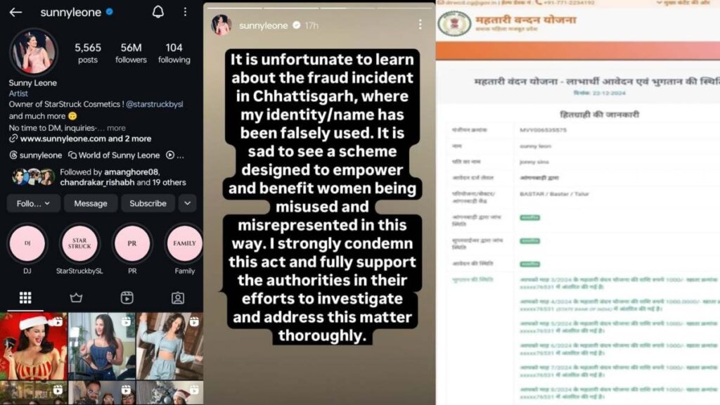 सनी लियोनी ने आज मंगलवार को सोशल मीडिया इंस्टाग्राम पर पोस्ट कर लिखा है कि, ”ये दुर्भाग्यपूर्ण है कि मेरे नाम और पहचान को लेकर एक फर्जीवाड़े की घटना छत्तीसगढ़ में घटी है। महतारी वंदन योजना महिलाओं के सशक्तीकरण और उन्हें लाभ पहुंचाने के उद्देश्य से बनाया गया है, लेकिन कुछ लोग इसका गलत इस्तेमाल कर रहे हैं। मैं ऐसी घटना की कड़ी निंदा करती हूं, साथ ही पूरा भरोसा दिलाती हूं कि जांच में अगर एजेंसी को किसी तरह की जरूरत होगी, तो मैं उसका पूरा सहयोग करूंगी।”