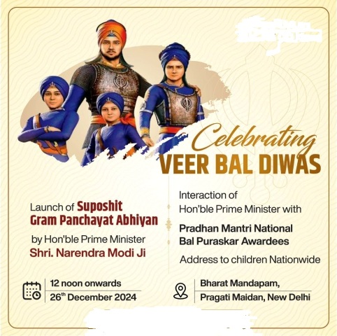 नई दिल्ली, 25 दिसंबर । प्रधानमंत्री नरेन्द्र मोदी गुरुवार को दोपहर करीब 12 बजे नई दिल्ली स्थित भारत मंडपम में बच्चों को भारत के भविष्य की नींव के रूप में सम्मानित करने वाले राष्ट्रव्यापी समारोह वीर बाल दिवस में भाग लेंगे। इस अवसर पर वे उपस्थित जनसमूह को संबोधित भी करेंगे।