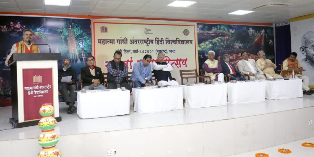 वर्धा। महात्मा गांधी अंतरराष्ट्रीय हिंदी विश्वविद्यालय के 26वें स्थापनोत्सव कार्यक्रम की अध्यक्षता करते हुए कुलपति प्रो. रजनीश कुमार शुक्ल ने कहा है कि विश्वविद्यालय के 25 वर्ष की यात्रा गौरवशाली रही है। इन 25 वर्षो में विश्वविद्यालय द्वारा हासिल की गई उपलब्धियाँ और प्रगति हमें विश्वविद्यालय के उज्ज्वल भविष्य के लिए प्रेरणा का काम करेगी। विश्वविद्यालय का 26वां स्थापनोत्सव कस्तूरबा सभागार में 8 जनवरी को आयोजित किया गया। इस अवसर पर प्रतिकुलपति द्वय प्रो. हनुमानप्रसाद शुक्ल और प्रो. चंद्रकांत रागीट, कुलसचिव क़ादर नवाज़ ख़ान, साहित्य विद्यापीठ के अधिष्ठाता प्रो. अवधेश कुमार, अनुवाद एवं निर्वचन विद्यापीठ के अधिष्ठाता प्रो. कृष्ण कुमार सिंह, संस्कृति विद्यापीठ के अधिष्ठाता प्रो. एल. कारूण्यकरा, मानविकी एवं सामाजिक विज्ञान विद्यापीठ के अधिष्ठाता प्रो. अनिल कुमार राय, शिक्षा एवं प्रबंधन विद्यापीठ के अधिष्ठाता प्रो. गोपाल कृष्ण ठाकुर, विधि विद्यापीठ के अधिष्ठाता प्रो. चतुर्भुज नाथ तिवारी और वर्धा समाज कार्य संस्थान के निदेशक डॉ. के बालराजु मंचासीन थे। इस दौरान सभी अधिष्ठाताओं ने अपने विद्यापीठ की उपलब्धियाँ और प्रगति का लेखाजोखा मेधोमन्थन के अंतर्गत प्रस्तुत किया।