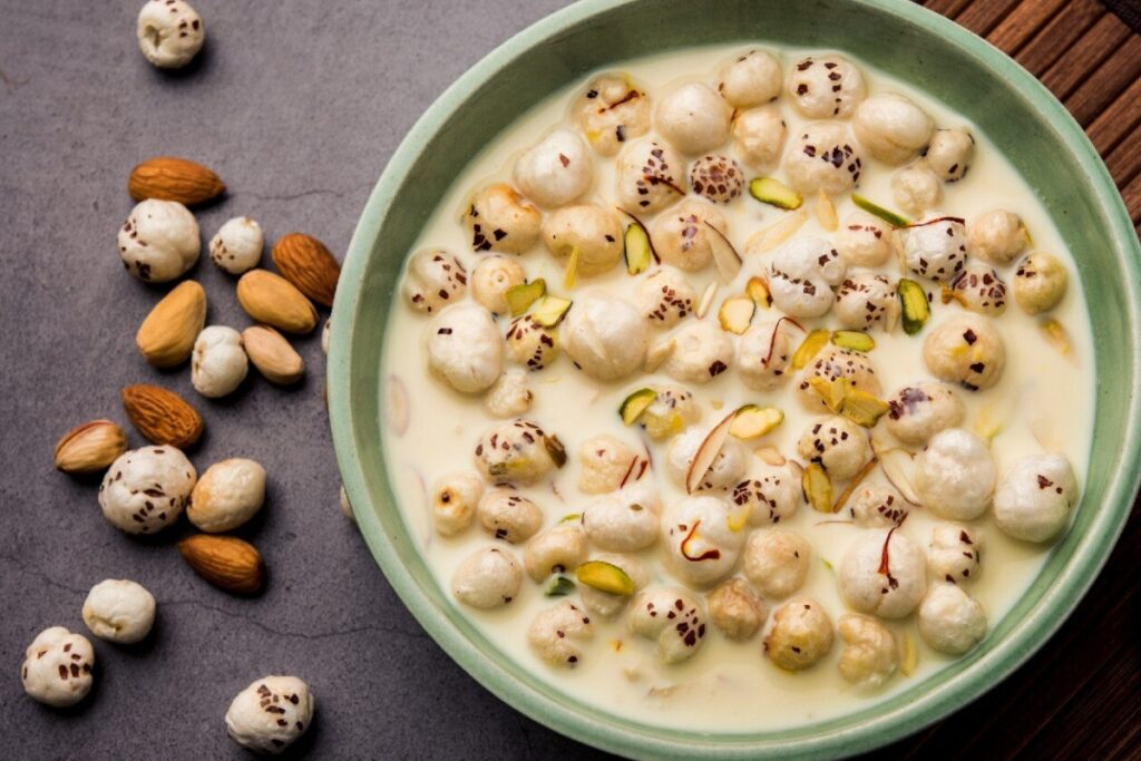 अगर आप अपना वजन कम करना चाहते हैं तो सुबह के समय एक मुट्ठी मखाना रोज़ाना खाएं। सुबह इसका सेवन करने से यह आसानी से पच जाता है। ऐसे खाने से पेट लंबे समय तक भरा हुआ रहता है और फूड की क्रेविंग भी कम होती है, जिससे वजन कम करने में मदद मिलती है। मखाना देसी घी में भूनकर नमक और काली मिर्च मिलाकर नमकीन की तरह खा सकते हैं और अगर आपको दूध पसंद है तो आप इसे दूध में उबालकर भी पी सकते हैं।