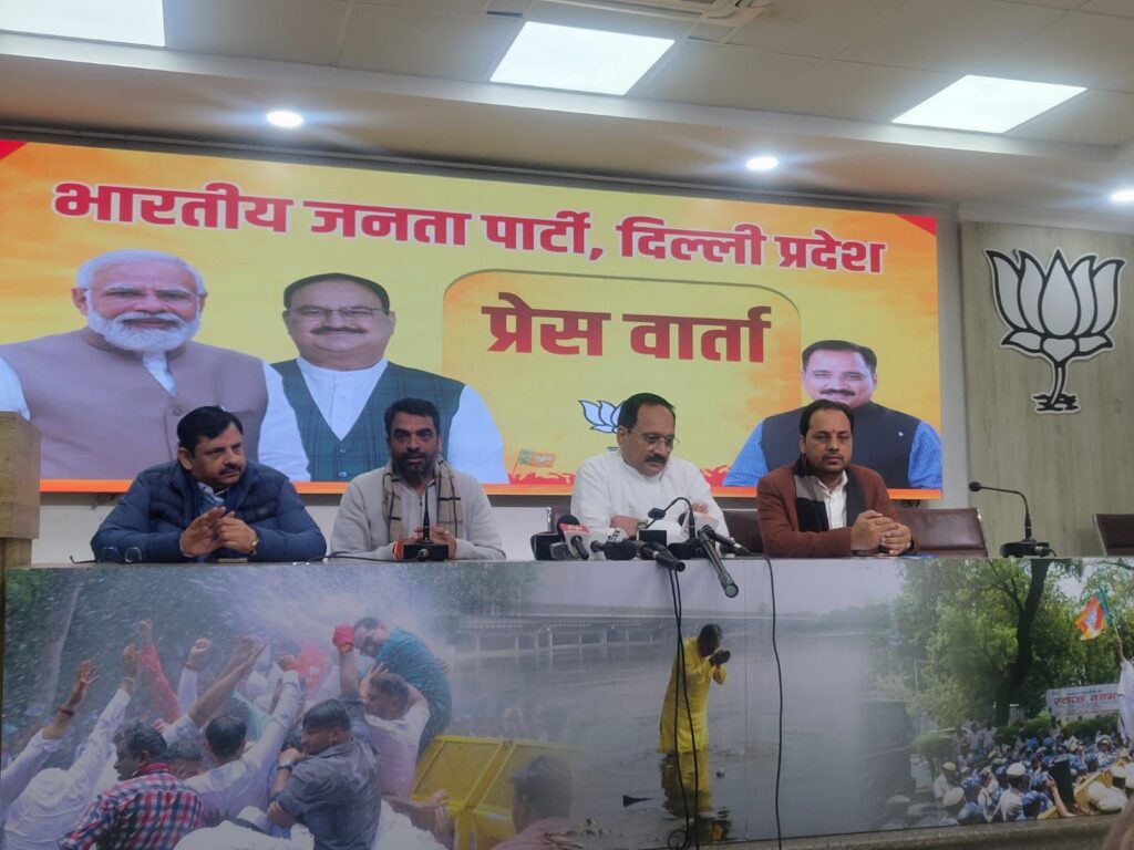 नई दिल्ली, 11 जनवरी । दिल्ली भाजपा अध्यक्ष वीरेन्द्र सचदेवा ने आज यहां पार्टी के प्रदेश मुख्यालय में आयोजित एक पत्रकार वार्ता में “शीशमहल आपदा फैलाने का अड्डा” टाइटल से एक गीत जारी किया। उन्होंने कहा कि यह गीत अरविंद केजरीवाल के भ्रष्टाचार और दिल्ली के टैक्स पेयर्स के पैसों को लूट कर बनाए गए शीशमहल की कहानी बयां करता है। उन्होंने इसके साथ ही पार्टी का तुरंत ही “आप-दा ए आजम” पोस्टर भी जारी किया।