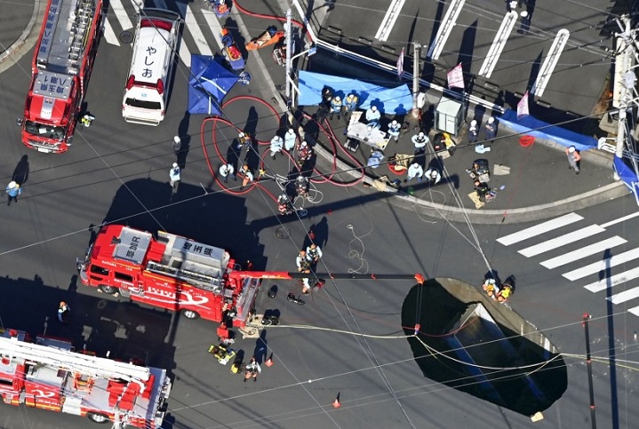 टोक्यो, 28 जनवरी । जापान के सैतामा प्रांत के याशियो में एक चौराहे पर मंगलवार को एक बड़े गड्ढे में एक ट्रक समा गया। इस घटना में एक व्यक्ति को बचा लिया गया। पुलिस को सुबह करीब 9:50 बजे एक आपातकालीन कॉल में कहा गया कि चौराहे पर अचानक जमीन धंस गई। इससे लगभग 10 मीटर चौड़ा और 6 मीटर गहरा गड्ढा बन गया। इस दौरान गुजर रहा एक ट्रक इसमें समा गया।