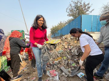 स्वाति मालीवाल ने विकासपुरी में स्थानीय लोगों के साथ स्वच्छता अभियान चलाया और कूड़ा उठाया। उन्होंने कहा कि वह इस कूड़े को केजरीवाल के घर के बाहर फेंकेंगी।