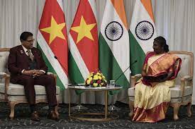 राष्ट्रपति ने कहा कि भारत और सूरीनाम के बीच सहयोग अच्छी तरह से आगे बढ़ रहा है। नियमित उच्च स्तरीय यात्राएं हमारे बढ़ते संबंधों को गति प्रदान कर रही हैं। उन्होंने तकनीकी सहयोग बढ़ाने और सूरीनाम में क्षमता निर्माण और कौशल विकास में योगदान के लिए भारत की प्रतिबद्धता को दोहराया। राष्ट्रपति ने कहा कि हमें पारस्परिक लाभ के लिए अपने व्यापार का विस्तार करने के लिए मिलकर काम करना चाहिए।