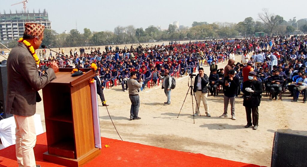 काठमांडू, 14 फ़रवरी। हिंदू स्वयंसेवक संघ की वार्षिक रूप से आयोजित की जाने वाली स्वामी विवेकानंद संस्कृति ज्ञान परीक्षा में इस वर्ष शुक्रवार को दस हजार से अधिक छात्रों ने प्रतिभाग किया है। काठमांडू के सैनिक मंच टुंडीखेल के परेड ग्राउंड में आयोजित इस संस्कृति ज्ञान परीक्षा में काठमांडू वैली के 500 विद्यालयों के दस हजार छात्रों ने सहभागिता की। कार्यक्रम विजेता छात्रों को प्रमाण पत्र भी वितरण किया गया।
