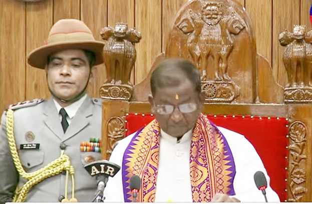 सत्र के पहले दिन राज्यपाल लक्ष्मण प्रसाद आचार्य ने 79 पेज का अपना अभिभाषण 12.04 मिनट पर आरंभ किया और समापन 12.29 मिनट पर किया। राज्यपाल ने अपने संबोधन में राज्य सरकार की अब तक की उपलब्धियों और आने वाले समय में आयोजित होने वाले कार्यक्रमों पर प्रकाश डाला। राज्य की आर्थिक विकास दर, एडवांटेज असम 2.0, शिक्षा, स्वास्थ्य, महिला सशक्तिकरण, सेमीकंडक्टर विनिर्माण इकाई, यूरिया प्लांट, चाय, स्टार्टअप समेत अन्य नवाचारों पर प्रकाश डाला।