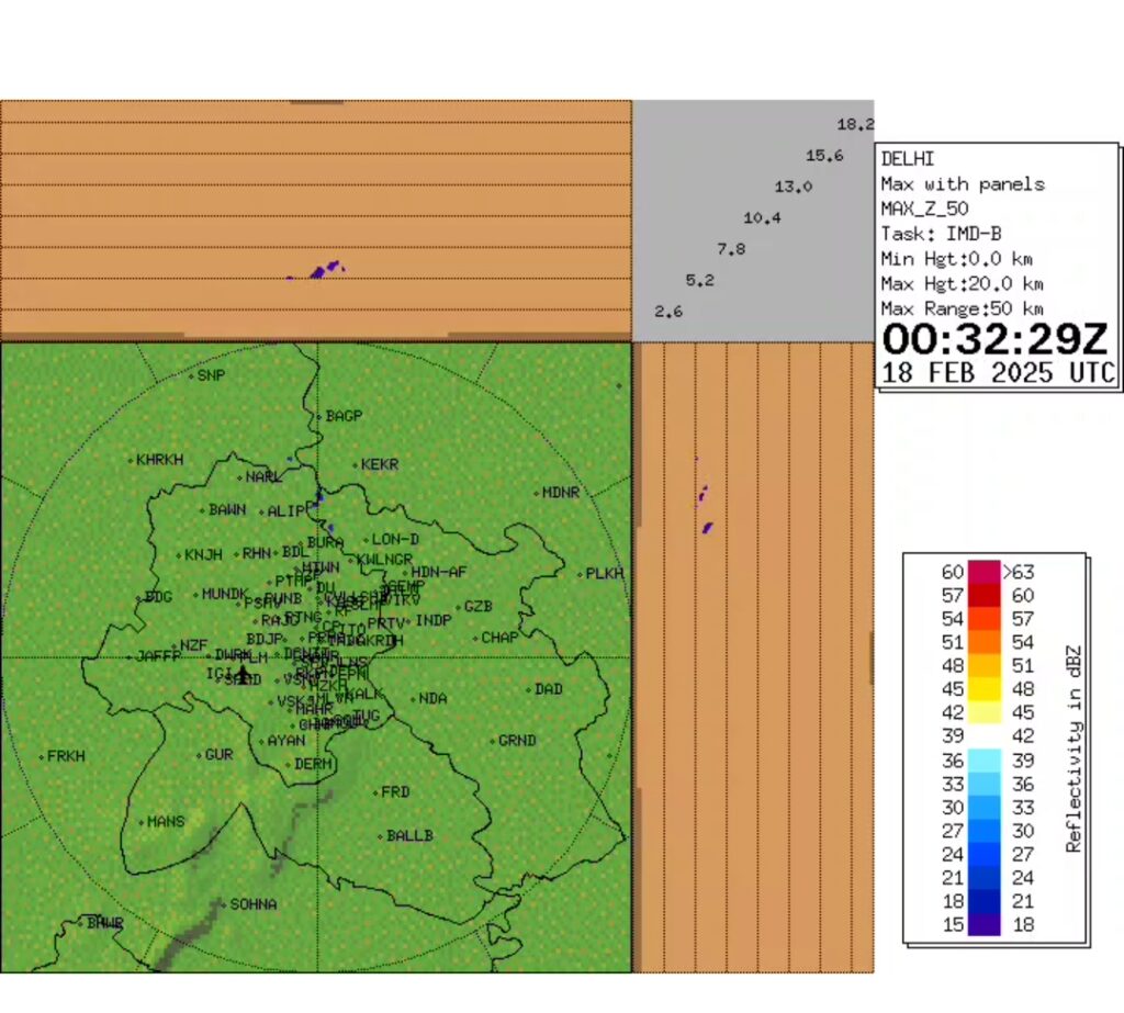 मौसम विभाग के अनुसार राजधानी में 18 फरवरी को हल्के बादल छाए रह सकते हैं और सुबह हल्का कोहरा भी रह सकता है। 19 और 20 फरवरी को दिल्ली में हल्की बारिश की संभावना जताई गई है जिसकी वजह से मौसम में ठंडक बढ़ सकती है। साथ ही 20-25 किमी प्रति घंटे की रफ्तार से तेज सतही हवाएं चलने की संभावना है।