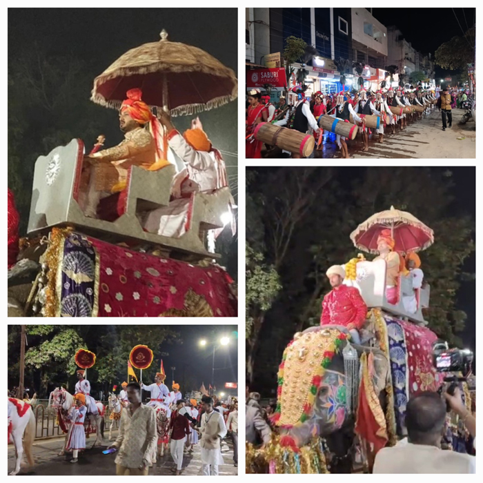 जगदलपुर, 20 फ़रवरी । बस्तर रियासत राजपरिवार के सदस्य कमलचंद्र भंजदेव का विवाह नागौद रियासत की भुवनेश्वरी देवी के साथ संपन्न होने जा रहा है। इसी बीच बुधवार देर शाम राजपरिवार के सदस्य कमलचंद्र भंजदेव की बारात शहर में निकली। बारात में कमलचंद्र हाथी पर सवार होकर निकले। वहीं बारातियों के साथ आगे-आगे ऊंट-घोड़े के साथ लाव-लश्कर चल रहा था। बरात के आगे बस्तर के विभिन्न जनजातियों के लोकनर्तक नृत्य करते बढ़ रहे थे। इसके बाद विशाल ढोल-नगाड़े और वाद्य यंत्रों से सुसज्जित काफिला था। देश भर से कई राजघरानों के सदस्य भी बरात में शामिल हुए।