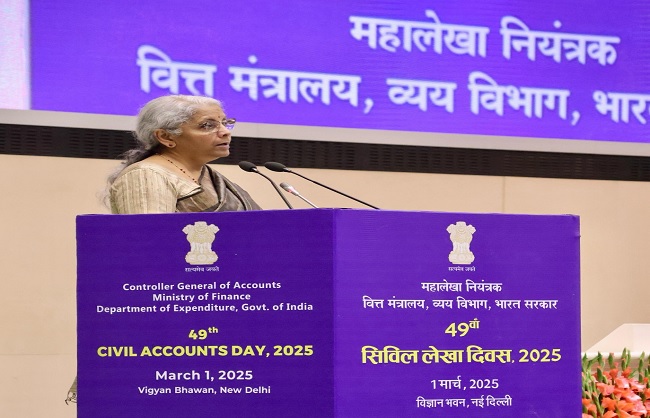 केंद्रीय वित्त मंत्री निर्मला सीतारमण नई दिल्ली में 49वें नागरिक लेखा दिवस के अवसर पर आयोजित समारोह को संबोधित कर रही थीं। इस अवसर पर उन्होंने लेखा महानियंत्रक (सीजीए) की अगुवाई में भारतीय लोक लेखा सेवा (आईसीएएस) के अधिकारियों की ”मौन तकनीकी क्रांति” के लिए सराहना की, जिसके तहत राज्यों को संचालन में बहुत आसानी हो रही है और सरकारी कामकाज को आसानी से पूरा किया जा रहा है।