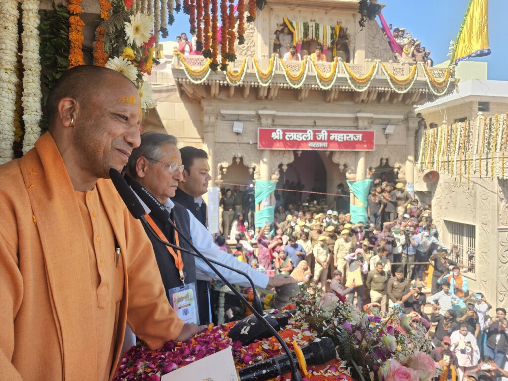 मुख्यमंत्री ने कहा कि इस बार के बजट में ब्रजभूमि के विकास के लिए विशेष व्यवस्था की गई है। करोड़ों की योजनाओं के साथ बरसाना को विकास से जोड़ा जा रहा है। पहली बार बरसाना में रोपवे की सुविधा शुरू हुई है। महाकुंभ के सकुशल सम्पन्न होने के बाद अब फुरसत मिली है। काशी, अयोध्या, प्रयागराज, मां विंध्यवासिनी धाम के विकास के बाद अब बारी इसी पुण्यभूमि की है। उन्होंने आश्वस्त किया कि मथुरा, बरसाना, ब्रजभूमि के विकास के लिए कोई सीमा नहीं है। योगी ने कहा कि वे होली के अवसर पर श्रीराधारानी के चरणों में इसी निवेदन के साथ पहुंचे हैं।