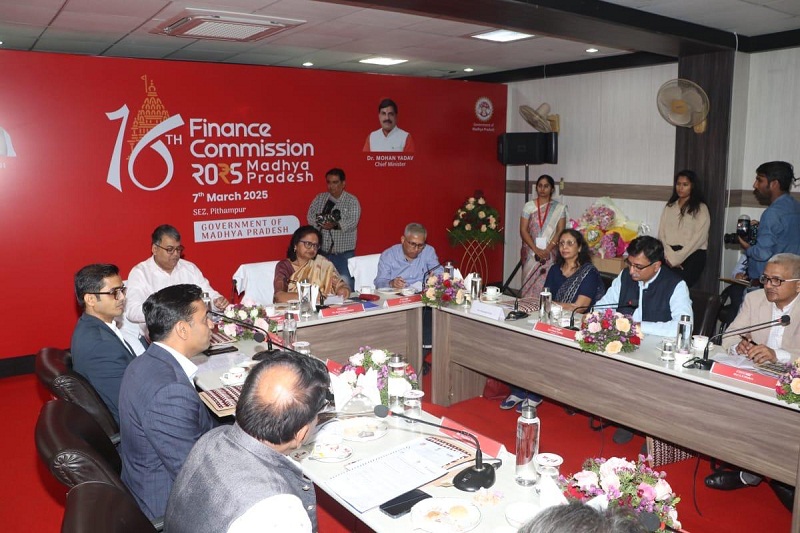 भोपाल, 07 मार्च। सोलहवें केंद्रीय वित्त आयोग ने मध्य प्रदेश के चार दिवसीय प्रवास के अंतिम दिन शुक्रवार को धार जिले के औद्योगिक नगर पीथमपुर स्थित निर्यात भवन में उद्योग एवं व्यापार संगठनों के प्रतिनिधियों के साथ बैठक कर औद्योगिक विकास और आर्थिक सहयोग से जुड़े मुद्दों पर विस्तृत चर्चा की। बैठक में आयोग सदस्य एनी जॉर्ज मैथ्यू, डॉ. मनोज पांडा, डॉ. सौम्या कांति घोष, आयोग के सचिव ऋत्विक पांडे, संयुक्त सचिव के.के. मिश्रा के अलावा इंदौर संभाग के कमिश्नर दीपक सिंह और धार कलेक्टर प्रियंक मिश्रा भी मौजूद थे।