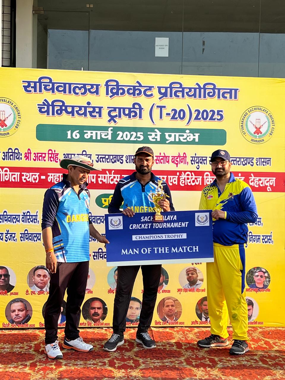 देहरादून। सचिवालय चैंपियंस ट्रॉफी 2025 में आज का दिन रोमांचक मुकाबलों से भरा रहा। कुल चार मैच खेले गए, जिनमें सचिवालय बुल्स, डेंजर और सचिवालय हरिकेन ने शानदार जीत दर्ज की, जबकि सचिवालय ए को वॉकओवर से विजेता घोषित किया गया। इन मुकाबलों में बल्लेबाजों और गेंदबाजों का बेहतरीन प्रदर्शन देखने को मिला, जिससे टूर्नामेंट का रोमांच चरम पर पहुंच गया।