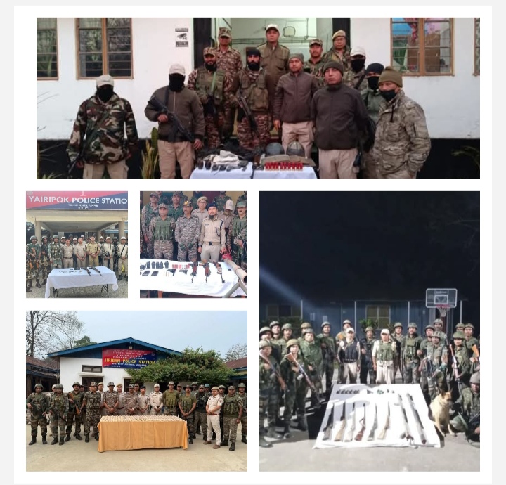 पुलिस प्रवक्ता के अनुसार, लमसांग थाना क्षेत्र (इंफाल पश्चिम) के अपुनलोक कैनाल (कांगचुप और सिंगदा कडंगबंद के बीच) में तलाशी के दौरान एक एसएलआर रायफल (मैगजीन सहित), एक पिस्तौल (मैगजीन सहित), 10 कारतूस, दो एचई ग्रेनेड (इग्नाइटर सेट के बिना), दो मिलिट्री हेलमेट, दो बुलेटप्रूफ जैकेट, चार स्थानीय निर्मित आयरन बुलेटप्रूफ प्लेट, दो बाओफेंग वायरलेस हैंडसेट (बिना बैटरी) बरामद किए गए।