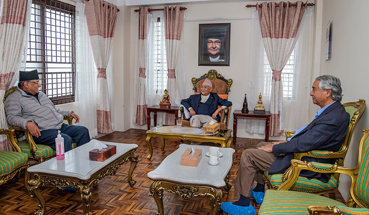 प्रधानमंत्री के प्रमुख राजनीतिक सलाहकार विष्णु रिमाल ने कहा कि आज शाम चार बजे प्रधानमंत्री के सरकारी आवास पर तीनों दल के शीर्ष नेताओं की बैठक होगी। बैठक में वर्तमान राजनीतिक परिदृश्य पर चर्चा होगी।उन्होंने बताया कि पूर्व राजा की गतिविधियां बढ़ने से नेपाल में लोकतंत्र और गणतंत्र खतरे में आ गया है।
