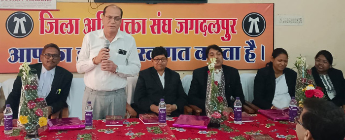 बस्तर जिला अधिवक्ता संघ के अध्यक्ष अरुण कुमार दास ने सभी न्यायाधीशों के कार्यकाल को अविवादित बताते हुए उनके व्यवहार के प्रति आभार व्यक्त किया और नए कार्य स्थल के लिए शुभकामना प्रेषित किया तथा पदोन्नति पर पुनः जगदलपुर आने की कामना मां दंतेश्वरी से की। कार्यक्रम का संचालन बस्तर जिला अधिवक्ता संघ के सचिव लिखेश्वर जोशी ने किया। इस दौरान जिला एवं सत्र न्यायालय के सभी न्यायाधीश गणों के साथ जिला अधिवक्ता संघ के उपाध्यक्ष पवन राजपूत सहसचिव संतोष चौधरी, ग्रंथपाल विजय प्रकाश दास, कोषाध्यक्ष दिनबंधु रथ, कार्यकारिणी सदस्य रमेश पाणिग्रही, मौसम लुणावत , श्रवण शुक्ल, संगीता ब्रिज, पूनम बाजपेई सहित बड़ी संख्या में अधिवक्ता गण उपस्थित थे।
