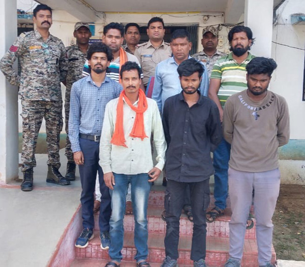 जगदलपुर, 27 मार्च । जिले की थाना फरसगांव पुलिस ने प्रार्थी सुदर्शन सेठिया के घर में घुसकर मारपीट करने वाले सात आराेपितों 1.पुष्पेन्द्र दीवान, 2.नीरज दीवान,3.गोवर्धन दीवान, 4.रमेश कुमार दीवान,5.सागर दीवान,6.मानसाय दीवान, सभी निवासी फरसागुड़ा थाना भानपुरी जिला बस्तर एवं 7.ज्ञानेन्द्र पाण्डेय निवासी सातगांव थाना कोण्डागांव काे गिरफ्तार कर लिया है।