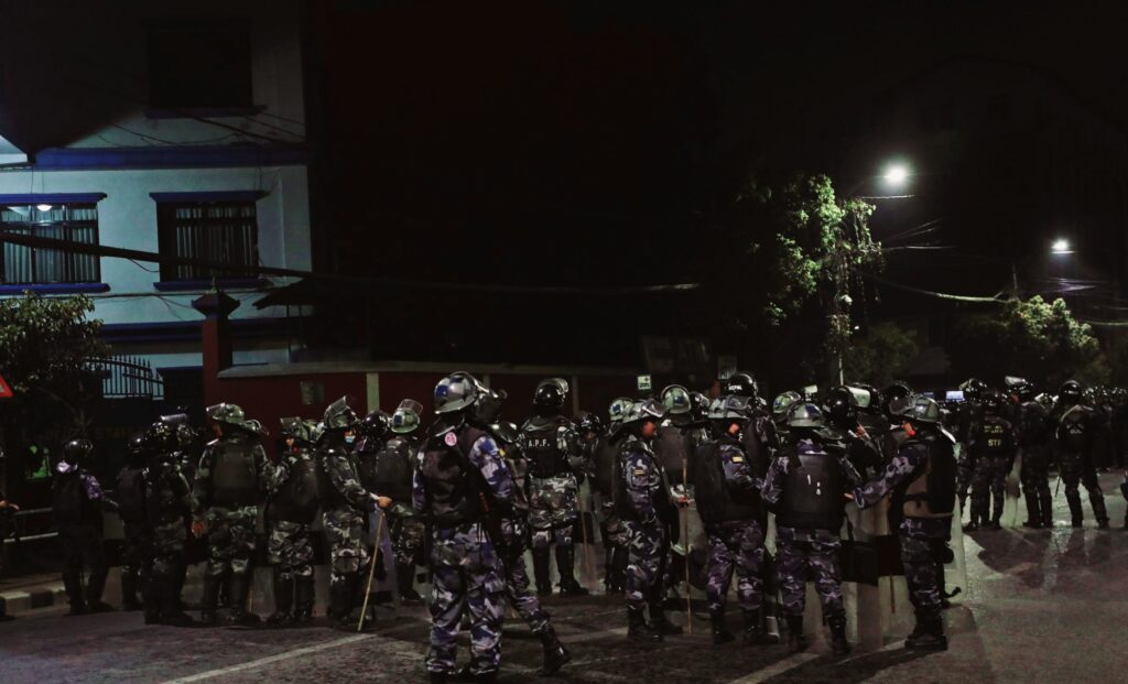 काठमांडू पुलिस प्रमुख एसएसपी विश्व अधिकारी ने बताया कि राष्ट्रीय प्रजातंत्र पार्टी के बड़े नेताओं और तोड़फोड़ आगजनी में जिन लोगों की पहचान हुई है, उनकी गिरफ्तारी की गई है। राजशाही की वापसी के लिए गठित संयुक्त जनसंघर्ष समिति के कमांडर बनाए गए दुर्गा प्रसाई की गिरफ्तारी का वारंट जारी हो गया है, लेकिन कई स्थानों पर छापा मारने के बाद भी उन्हें गिरफ्तार नहीं किया जा सका है।