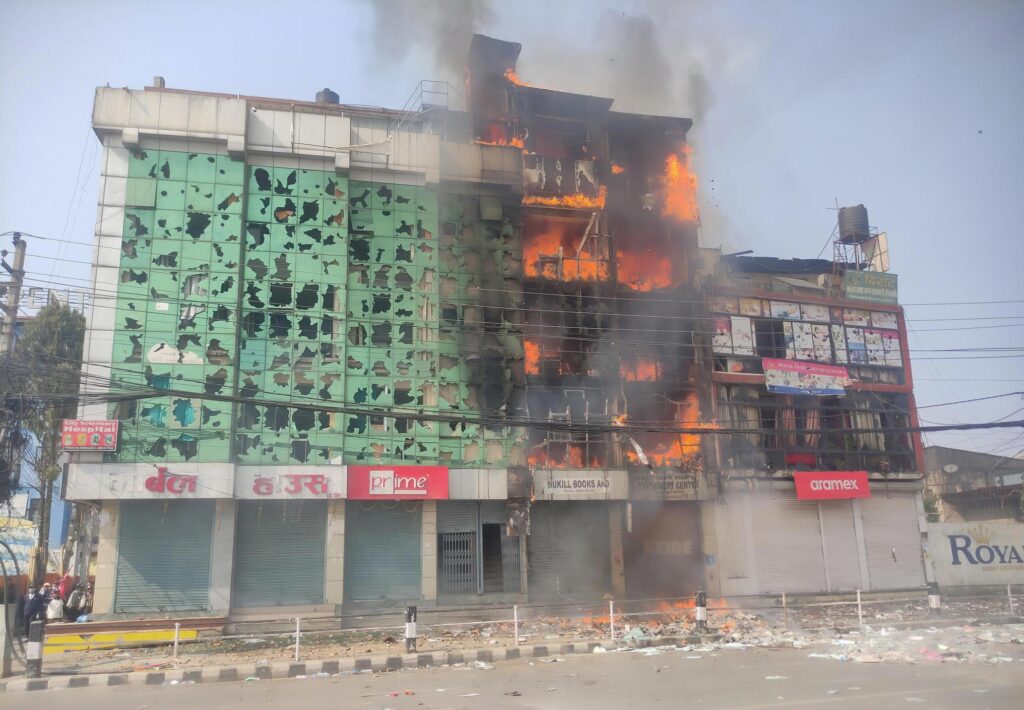 इसी तरह झड़प की रिपोर्टिंग करने के लिए गए एक पत्रकार की जिंदा जलकर मौत हो गई । प्रदर्शनकारियों ने जिस भवन को आग के हवाले किया, उसी भवन से एक पुरुष का शव निकला जिसकी पहचान एक स्थानीय टीवी चैनल के कैमरामैन के रूप में की गई । गृह मंत्रालय के प्रवक्ता रिजाल ने बताया कि इस पत्रकार का शव 95 प्रतिशत जले हुए अवस्था में बरामद किया गया। हालांकि प्रदर्शनकारियों का तर्क है कि इसी भवन में पुलिस ने बहुत अधिक मात्रा में अश्रु गैस के बुलेट रखने के कारण वहां आग पकड़ ली। सोशल मीडिया पर अभिनेत्री मनीषा कोइराला ने एक वीडियो डाला है जिसमें इसी भवन से पुलिस द्वारा मंच पर अश्रु गैस प्रहार करते हुए दिखाया गया है।