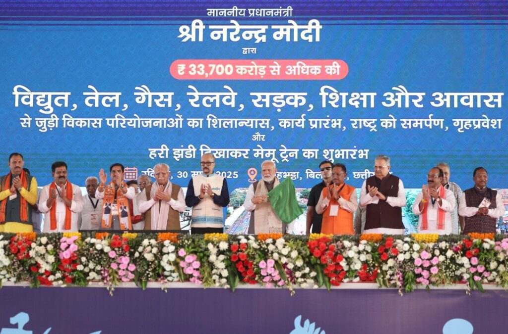 प्रधानमंत्री नरेंद्र मोदी ने छत्तीसगढ़ में 33 हजार 700 करोड़ रुपये की परियोजनाओं का शुभारंभ किया। बिलासपुर में एक जनसभा को संबोधित करते हुए श्री मोदी ने कहा कि इन पहलों से हजारों नौकरियां पैदा होंगी और राज्य के आर्थिक विकास में तेजी आएगी।