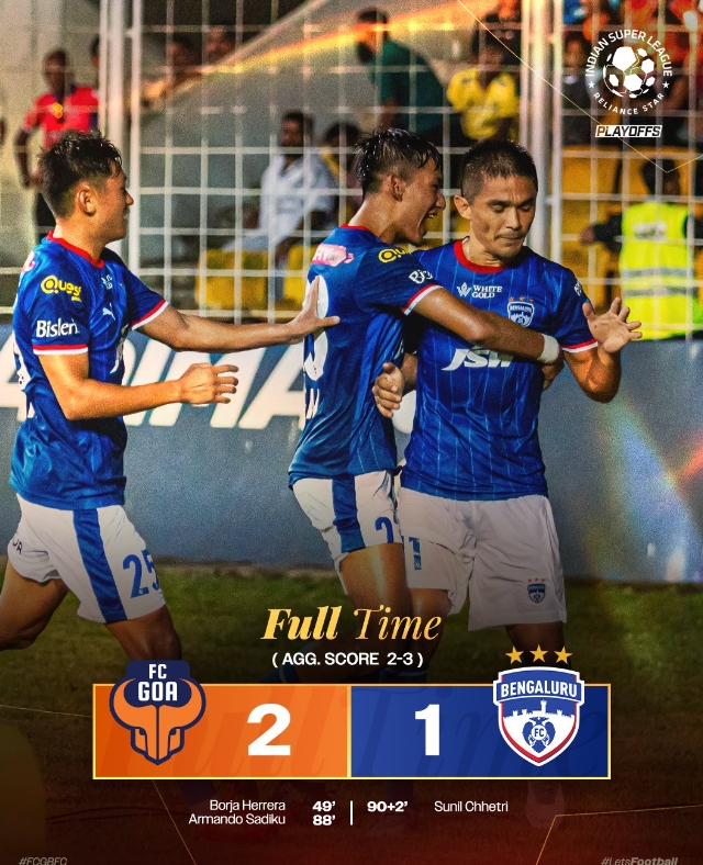 गोवा, 7 अप्रैल। एफसी गोवा ने रविवार रात अपने घरेलू मैदान फतोर्दा के जवाहरलाल नेहरू स्टेडियम में खेले गए इंडियन सुपर लीग (आईएसएल) 2024-25 सेमीफाइनल के दूसरे चरण में बेंगलुरू एफसी को 2-1 से हरा दिया लेकिन ब्लूज ने बेहतर गोल अंतर के आधार पर फाइनल में प्रवेश कर लिया है।
