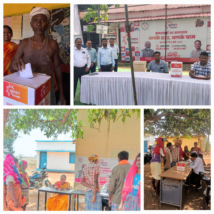 जगदलपुर, 8 अप्रैल। सुशासन तिहार 2025 के पहले चरण के प्रथम दिवस में जिले के सभी ग्रामों, हाट बाजार, नगर पंचायत बस्तर और नगर निगम जगदलपुर के वार्डों में, कलेक्टर कार्यालय सहित अन्य शासकीय कार्यालयों में समाधान पेटी की व्यवस्था की गई है । जिसमें आवेदक गण अपनी समस्या, शिकायत और मांग के लिए आवेदन कर रहे है । ग्रामीण इलाकाें में कलेक्टर के निर्देशानुसार समाधान पेटी के साथ आवेदन लिखने के लिए सहयोगी की व्यवस्था भी देखी गई, जिससे ग्रामीण अपनी मांग, समस्या, शिकायतें लिखवाकर समाधान पेटी में डाल रहे हैं।