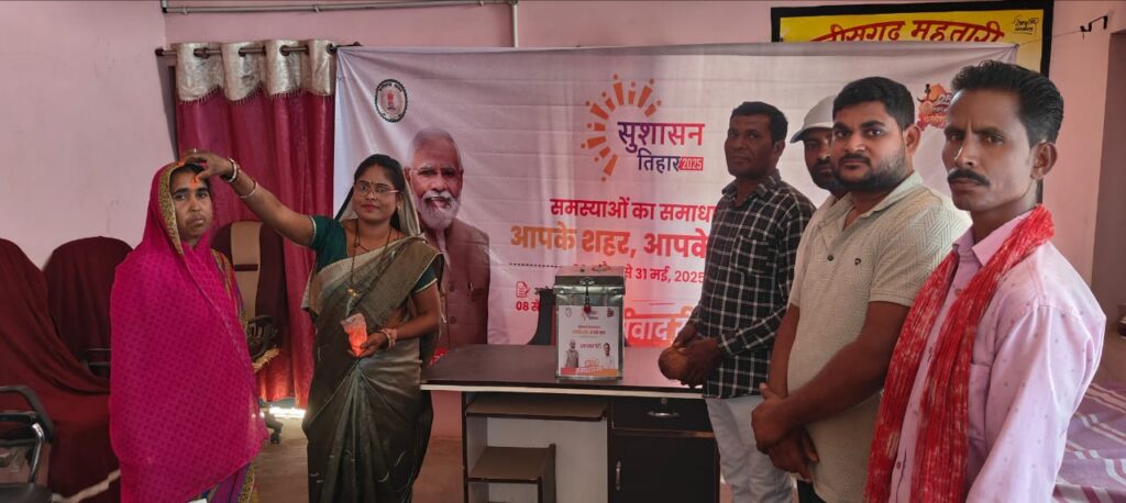 नगर पालिका परिषद बलौदाबाजार में एसडीएम की उपस्थिति में वार्ड क्रमांक 3 में प्रथम आवेदक सूरज पटेल का गुलाब फूल देकर स्वागत किया गया। विकासखंड भाटापारा के ग्राम पंचायत देवरी में मंडल अध्यक्ष की उपस्थिति में प्रथम आवेदक का स्वागत किया गया। इसीतरह सभी नगरीय निकायों के वार्डो और ग्राम पंचायतों में सुशासन तिहार का आगाज हुआ।