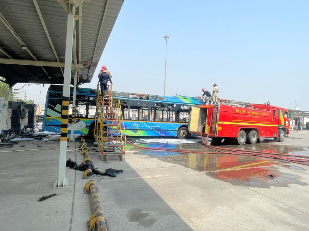 दमकलकर्मियों को बस में लगी बैटरी में लगी आग को बुझाने में काफी मशक्कत करनी पड़ी। फिलहाल, घटना में किसी के हताहत होने की कोई सूचना नहीं है। पुलिस आग लगने के कारणों की जांच कर रही है।