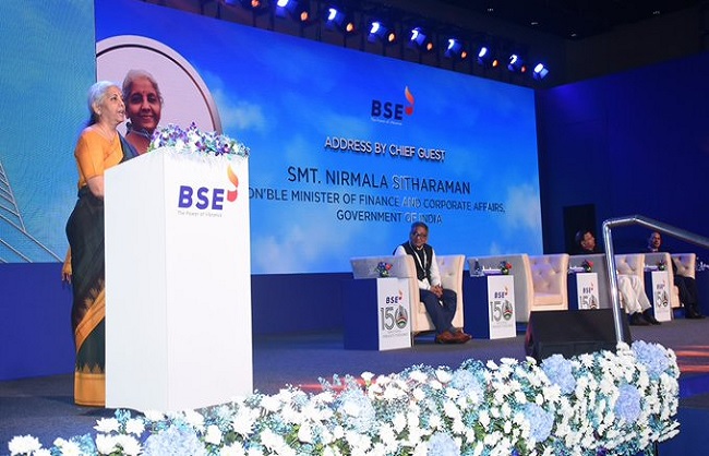 केंद्रीय वित्त मंत्री निर्मला सीतारमण आज बॉम्बे स्टॉक एक्सचेंज (बीएसई) के 150 वर्ष पूरे होने के अवसर पर आयोजित कार्यक्रम को संबोधित कर रही थीं। उन्होंने