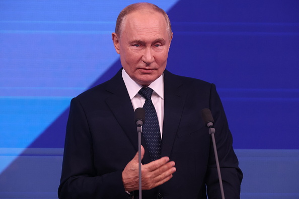 MOSCOW, RUSSIA - SEPTEMBER 7 (RUSSIA OUT) Russian President Vladimir Putin gestures during his speech at the meeting in Zaryadye Hall, marking the City Day, September 7, 2024, in Moscow, Russia. Putin came back to Moscow after a long-term trip to Mongolia and Russia's Far East to vote in a local elections and to attend the celebration of the City Day. (Photo by Contributor/Getty Images)