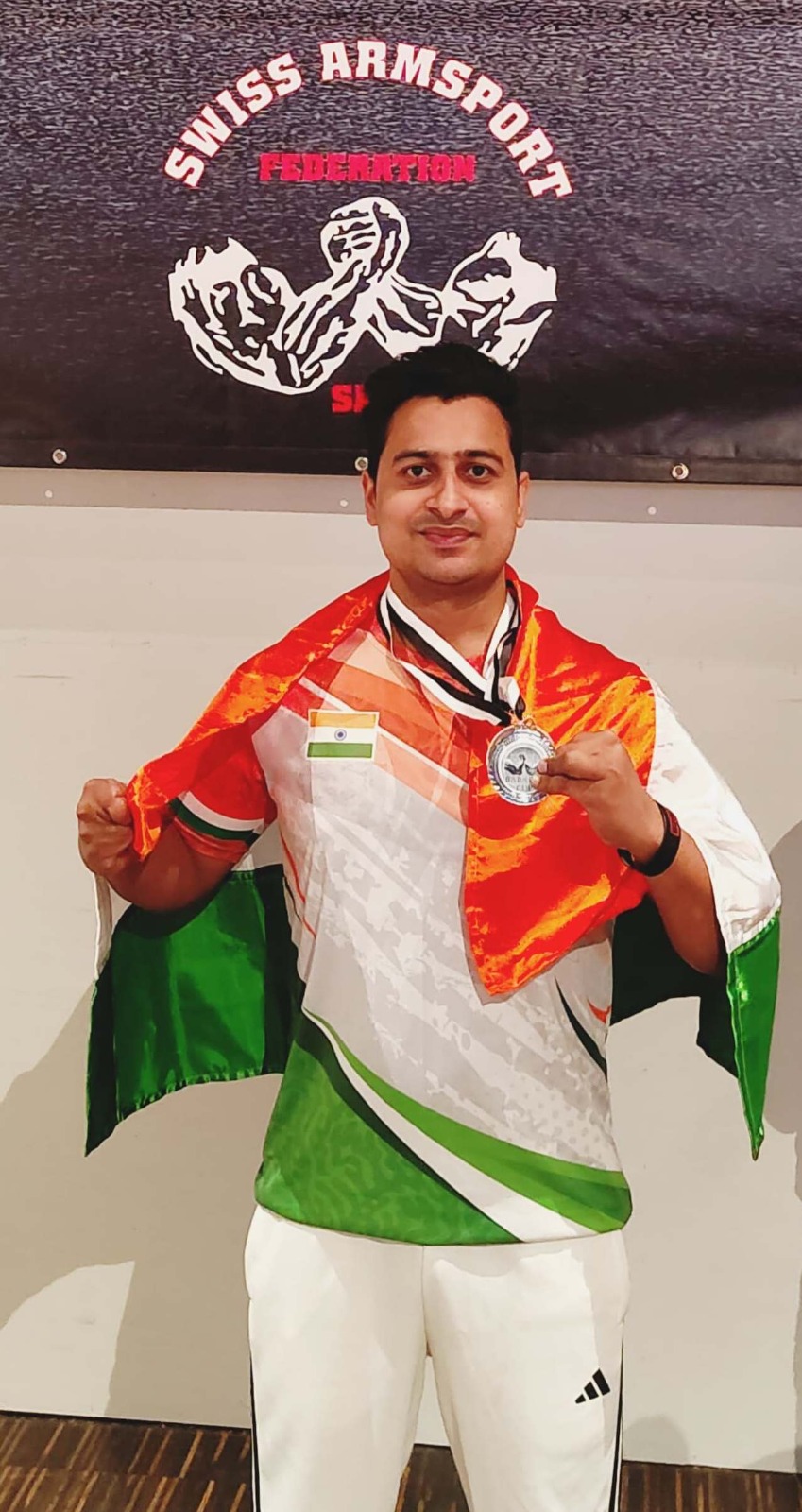 रायपुर। छत्तीसगढ़ की इस्पात नगरी भिलाई के निवासी और पैरा आर्म रेशलर श्रीमंत झा ने स्विट्जरलैण्ड में 25 अप्रैल से 27 अप्रैल 2025 तक आयोजित “स्विस पैरा-आर्म रेसलिंग कप” में 85 किलोग्राम वर्ग में शानदार प्रदर्शन करते हुए सिल्वर मेडल जीतकर देश का तिरंगा लहराया। उन्होंने अपने इस मेडल को पहलगाम के आतंकी हमले में जान गंवाने वाले लोगों को समर्पित किया है।