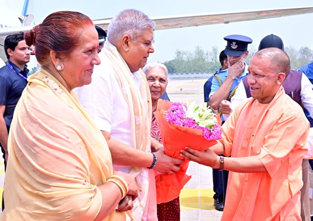 उपराष्ट्रपति प्लेन से सुबह बक्शी का तालाब स्थित एयरफोर्स के एयरपोर्ट पर उतरे। उनका राज्यपाल आनंदीबेन पटेल और मुख्यमंत्री योगी आदित्यनाथ ने स्वागत किया। मुख्यमंत्री ने इस दौरान कहा कि समृद्धि, नवाचार और प्रगति के नित नए कीर्तिमान स्थापित करते उत्तर प्रदेश की पावन धरा पर आपका हार्दिक स्वागत एवं अभिनंदन है। इस दौरान उपमुख्यमंत्री ब्रजेश पाठक और भारतीय जनता पार्टी के प्रदेश अध्यक्ष भूपेन्द्र चौधरी भी मौजूद रहे।