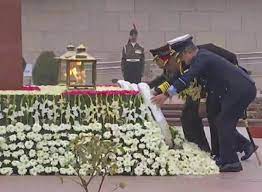 नई दिल्ली, 14 जनवरी । सीडीएस जनरल अनिल चौहान और तीन सेवा प्रमुखों- सेना प्रमुख जनरल मनोज पांडे, वायुसेना प्रमुख एयर चीफ मार्शल वीआर चौधरी और नौसेना प्रमुख एडमिरल आर हरि कुमार ने शनिवार को सातवें सशस्त्र बल पूर्व सैनिक दिवस पर राष्ट्रीय युद्ध स्मारक पर माल्यार्पण किया। रक्षा मंत्री राजनाथ सिंह उत्तराखंड के देहरादून छावनी में सातवें सशस्त्र बल भूतपूर्व सैनिक दिवस समारोह में शामिल होंगे।