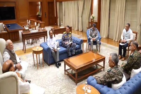 भारत-पाकिस्तान के बीच बढ़ते तनाव के बीच प्रधानमंत्री नरेंद्र मोदी ने आज नई दिल्ली में तीनों सेनाओं के प्रमुखों – थल सेना, वायु सेना और नौसेना के साथ एक उच्च स्तरीय बैठक की अध्यक्षता की। बैठक में रक्षा मंत्री राजनाथ सिंह और राष्ट्रीय सुरक्षा सलाहकार अजीत डोभाल भी मौजूद थे।