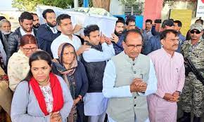 भोपाल, 14 जनवरी । जनता दल यूनाइटेड (जेडीयू) के पूर्व राष्ट्रीय अध्यक्ष, समाजवादी नेता और पूर्व केंद्रीय मंत्री शरद यादव की पार्थिव देह शनिवार दोपहर चार्टर्ड विमान के जरिए दिल्ली से भोपाल लाई गई। यहां राजा भोज विमानतल पर मुख्यमंत्री शिवराज सिंह चौहान, पूर्व मुख्यमंत्री दिग्विजय सिंह, भाजपा के प्रदेशाध्यक्ष वीडी शर्मा, कांग्रेस विधायक व पूर्व मंत्री पीसी शर्मा समेत कुछ अन्य गणमान्य लोगों ने उन्हें श्रद्धांजलि दी। इस मौके पर दिग्विजय सिंह के पुत्र व प्रदेश के पूर्व मंत्री जयवर्धन सिंह और कांग्रेस के जिलाध्यक्ष कैलाश मिश्रा समेत अन्य जनप्रतिनिधि मौजूद रहे।