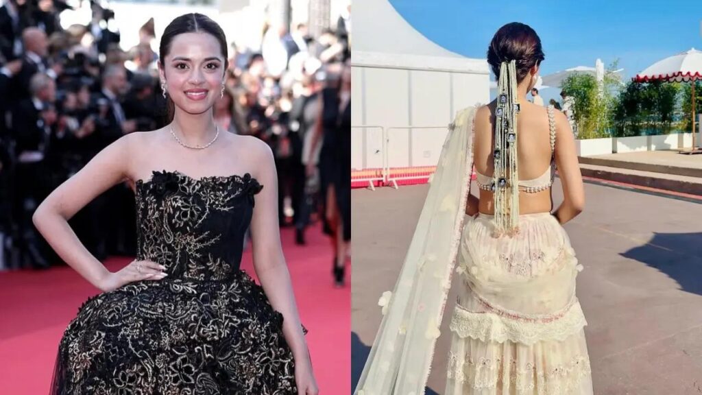 सोशल मीडिया पर नितांशी गोयल की एक तस्वीर खूब वायरल हो रही है, जिसमें वह सफेद साड़ी में बेहद खूबसूरत नजर आ रही हैं। हालांकि, इस लुक में सबसे खास बात उनके हेयरस्टाइल की रही, जिसने सबका ध्यान अपनी ओर खींचा। नितांशी के बालों में मोतियों की एक खूबसूरत लड़ी लगी थी, जिसमें छोटे-छोटे फ्रेम जड़े थे। इन फ्रेम्स में भारतीय सिनेमा की दिग्गज अभिनेत्रियों, मधुबाला, रेखा, श्रीदेवी, वैजयंती माला, हेमा मालिनी, वहीदा रहमान और नूतन की तस्वीरें लगी थीं। नितांशी ने कहा कि वह कान्स फिल्म फेस्टिवल में भारत का प्रतिनिधित्व कर गर्व महसूस कर रही हैं।