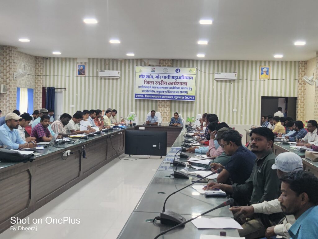 सूरजपुर, 24 मई । छत्तीसगढ़ शासन द्वारा प्रारंभ किए गए मोर गांव मोर पानी महाअभियान के अंतर्गत जल संरक्षण एवं आजीविका संवर्धन को लेकर आज शनिवार को जिला स्तरीय कार्यशाला का आयोजन कलेक्टर एस जयवर्धन की अध्यक्षता में किया गया। कार्यशाला में कृषि, पशु, मत्स्य, उद्यानिकी, जलसंसाधन, आरईएस, पीएचई सहित विभिन्न विभागों के जिला स्तर के अधिकारियों, सभी जनपद सीईओ, जिला पंचायत के अधिकारियों एवं कर्मचारियों सहित ग्रामीण जनों ने भाग लेकर जल संकट से निपटने एवं जल की उपलब्धता सुनिश्चित करने के उपायों पर मंथन किया।