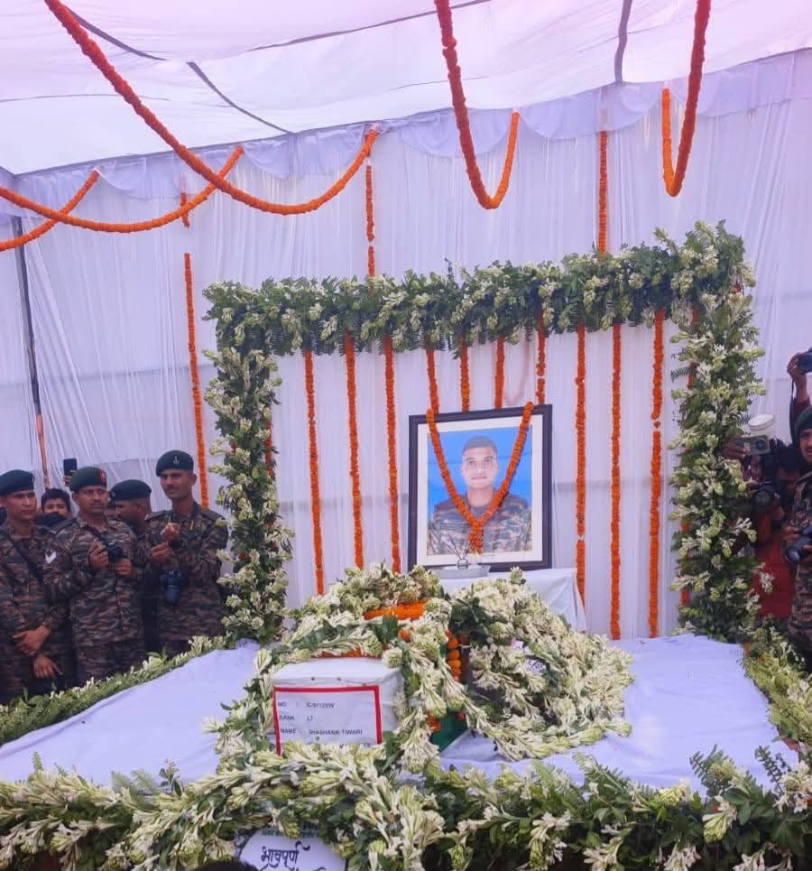 वीरगति को प्राप्त लेफ्टिनेंट शशांक तिवारी का पार्थिव शरीर पंचतत्व में विलीन हो गया। शनिवार को राजकीय सम्मान के साथ सेना के जवानों ने सलामी दी। इस मौके पर प्रदेश के कृषि मंत्री सूर्य प्रताप शाही के साथ ही जिले के वरिष्ठ अधिकारी और भारी संख्या में मौजूद लोगों ने बलिदानी लेफ्टिनेंट को श्रद्धांजलि प्रदान की। इस दौरान 50 लाख रुपये की अनुग्रह राशि बलिदानी लेफ्टिनेंट मांता को प्रदान की गई