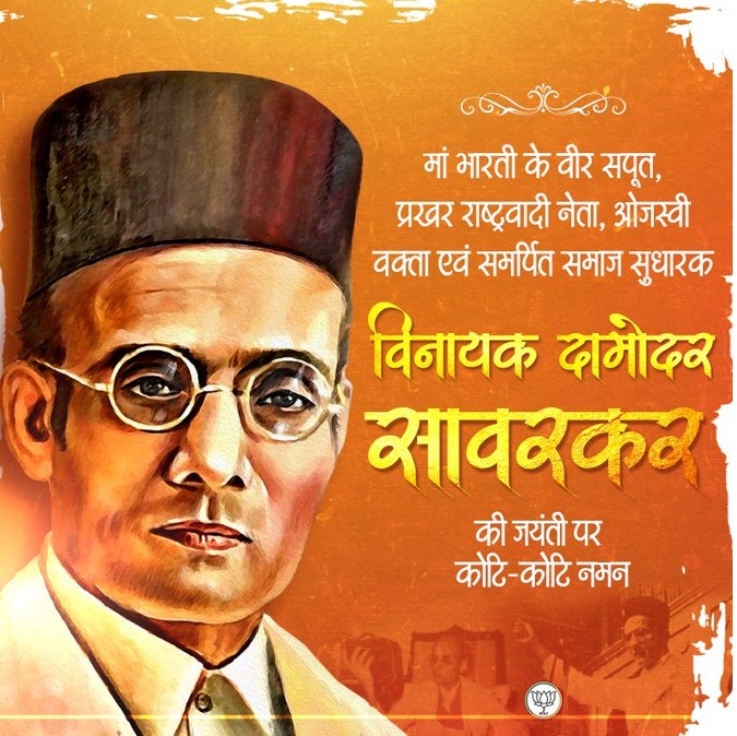 नई दिल्ली, 28 मई । भारतीय जनता पार्टी (भाजपा) ने स्वातंत्र्य वीर विनायक दामोदर सावरकर की जयंती पर उन्हें याद किया। भाजपा ने आज सुबह एक्स पर लिखा, ” मां भारती के वीर सपूत, प्रखर राष्ट्रवादी नेता, ओजस्वी वक्ता एवं समर्पित समाज सुधारक विनायक दामोदर सावरकर की जयंती पर कोटि-कोटि नमन।”