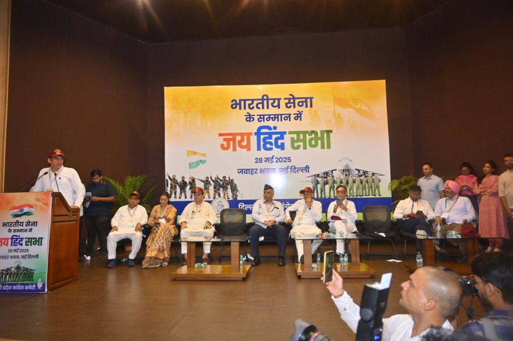 नई दिल्ली। दिल्ली प्रदेश कांग्रेस कमेटी ने ऑपरेशन सिंदूर में भारतीय सेना की वीरता, पराक्रम, बलिदान और शौर्य को सम्मान देने के लिए बुधवार को जवाहर भवन में जय हिन्द सभा का आयोजन किया। जय हिन्द सभा में 1962, 1965, 1971, कारगिल युद्ध, भारतीय शांति सेना, संयुक्त राष्ट्र मिशन, वीरता पुरस्कार विजेता और वीर शहीदों की पत्नियां सहित सैंकड़ों पूर्व सैनिक मौजूद रहे, जिनका जय हिन्द सभा में सम्मान भी किया गया।