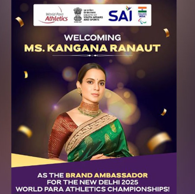 नई दिल्ली। पैरालंपिक कमेटी ऑफ इंडिया (पीसीआई) ने बुधवार को घोषणा की कि प्रसिद्ध अभिनेत्री और भाजपा नेत्री कंगना रनौत को नई दिल्ली में होने वाली वर्ल्ड पैरा एथलेटिक्स चैंपियनशिप 2025 का आधिकारिक ब्रांड एंबेसडर नियुक्त किया गया है। कंगना के इस जुड़ाव से भारत में पैरा स्पोर्ट्स को नई ऊर्जा, अधिक दृश्यता और समाज में समावेशन को बढ़ावा मिलेगा। ब्रांड एंबेसडर के रूप में कंगना रनौत संघर्ष, समावेशन और उत्कृष्टता जैसे मूल्यों का समर्थन करेंगी।