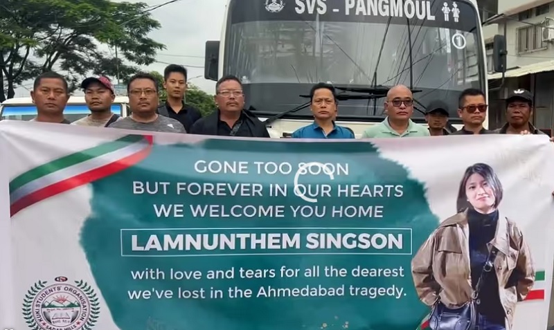 हाल ही में अहमदाबाद में एयर इंडिया दुर्घटना के शिकार हुई हवाई जहाज की क्रू मेंबर लमनुंथेम सिंगसन के पार्थिव शरीर को लेने के लिए कंगपोकपी से परिवार के सदस्य और समुदाय के प्रतिनिधि गुरुवार की को डिमापुर हवाई अड्डे के लिए रवाना हुए।
