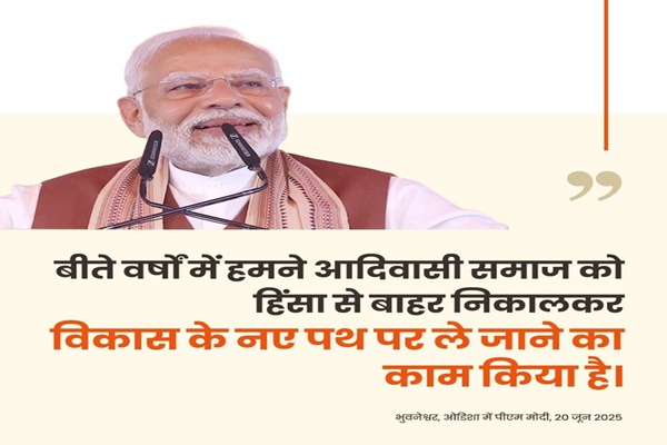 प्रधानमंत्री नरेंद्र मोदी ने आज शाम ओडिशा में 18,600 करोड़ रुपये से अधिक की लागत वाली कई विकास परियोजनाओं का उद्घाटन और शिलान्यास किया। मुख्यमंत्री मोहन चरण माझी के नेतृत्व वाली ओडिशा में पहली भाजपा सरकार के एक वर्ष पूरे होने के उपलक्ष्य में भुवनेश्वर के जनता मैदान में आयोजित एक सार्वजनिक रैली को संबोधित करते हुए उन्होंने कहा कि देश में नक्सलवाद का संकट जल्द ही समाप्त हो जाएगा। श्री मोदी ने कहा कि केंद्र की भाजपा सरकार ने देश में नक्सल प्रभावित जिलों की संख्या को 20 से भी कम कर दिया है। उन्होंने कहा कि पिछले एक दशक में केंद्र की भाजपा सरकार ने हर मोर्चे पर आदिवासी लोगों के जीवन को ऊपर उठाने के लिए काम किया है। श्री मोदी ने कांग्रेस के शासन मॉडल की भी आलोचना की, जिसके बारे में उन्होंने कहा कि इसने बड़े पैमाने पर भ्रष्टाचार के कारण लोगों का जीवन दयनीय बना दिया है, और असम और त्रिपुरा सहित कई राज्यों में भाजपा के सुशासन के मॉडल पर प्रकाश डाला, जो अब शांति और विकास के मार्ग पर हैं। उन्होंने उम्मीद जताई कि ओडिशा 2036 तक एक विकसित राज्य बन जाएगा, जैसा कि उनके द्वारा अनावरण किए गए ओडिशा विजन डॉक्यूमेंट-2036 में कल्पना की गई है। प्रधानमंत्री ने बीजू पटनायक अंतर्राष्ट्रीय हवाई अड्डे से जनता मैदान तक एक विशाल रोड शो भी किया।